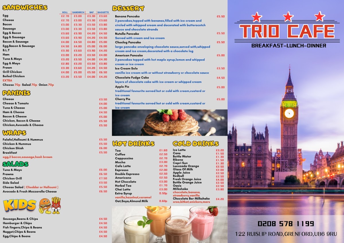 Welcome to Trio Cafe, an inviting gem nestled at 122 Ruislip Rd, Greenford UB6 9RU, United Kingdom. This delightful cafe serves as a perfect blend of comfort and warmth, where each visit feels like stepping into a home away from home. Whether you're starting your day with breakfast or taking a well-deserved lunch break, Trio Cafe promises a culinary experience that will leave your taste buds singing.